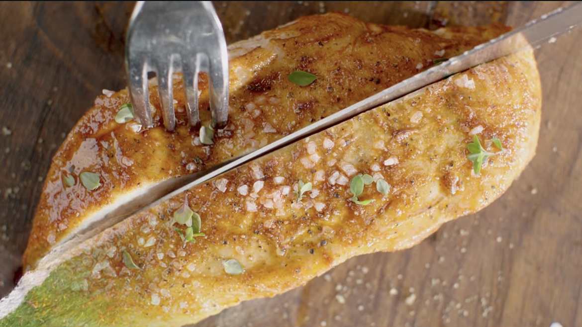 The commercial was about promoting their chicken breast, which had to be shown both raw and fried.